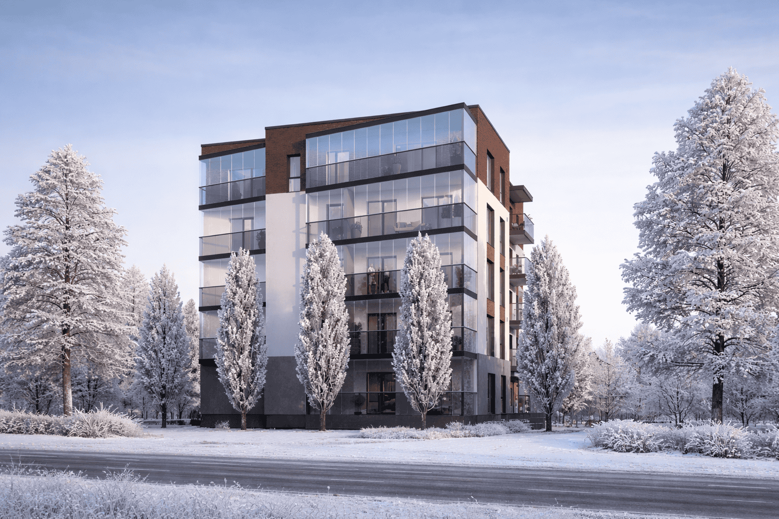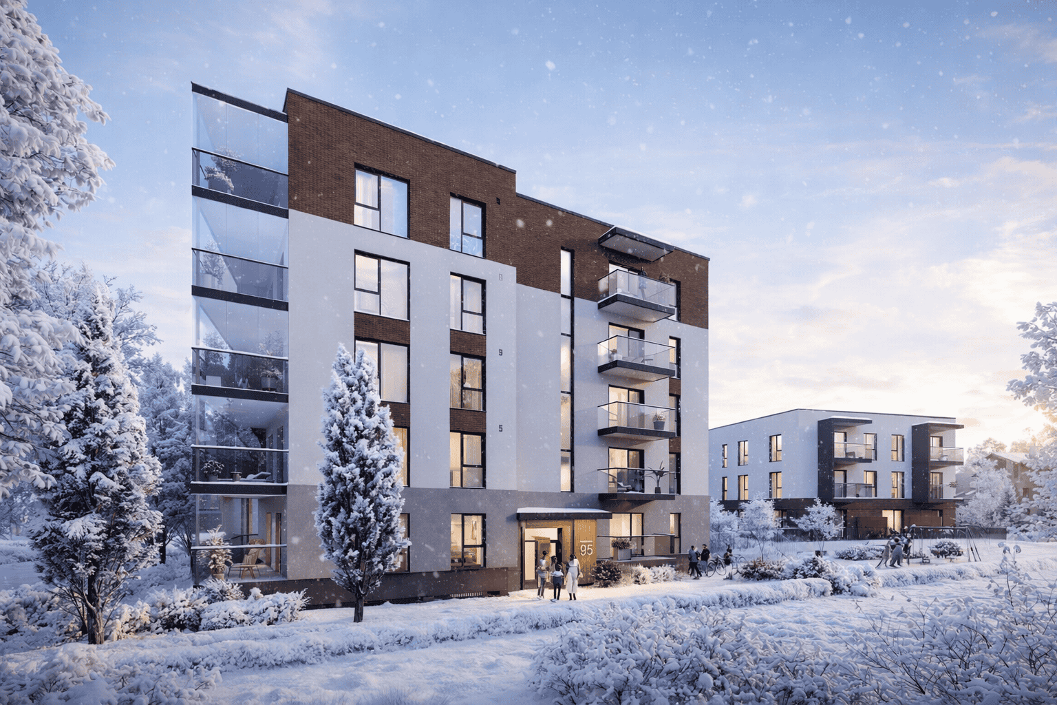 Landen's goal for this residential development is to create a modern and energy-efficient apartment building that provides a contemporary living environment and business opportunities. The design of the apartments and commercial spaces emphasizes both comfort and functionality, offering the best quality of life, well-thought-out space solutions, and an inspiring work environment.
